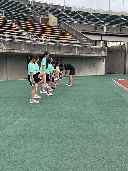 走るときに上を向いたり横を見たりするとスピードが落ちます。目的地『ゴール』をしっかり見て背筋を伸ばして姿勢(軸)を整えて走り切りましょう。 - スタートでしっかり前傾